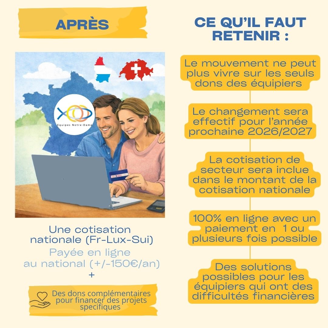 Aujourd’hui le mouvement entre dans une nouvelle étape de son développement. Afin d’harmoniser les services que nous vous proposons, de renforcer nos actions et de nous donner le moyen de nos ambitions, nous avons décidé de faire évoluer notre système de cotisation.